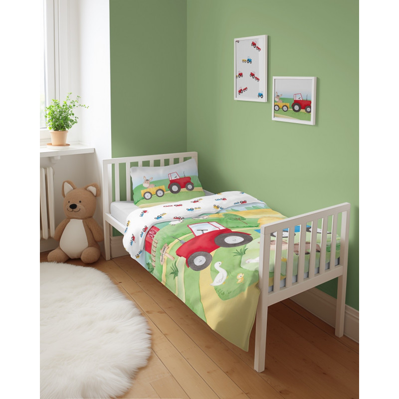 Pościel Dwustronna Bambusowa 100x135cm 2cz Czerwony Traktorek