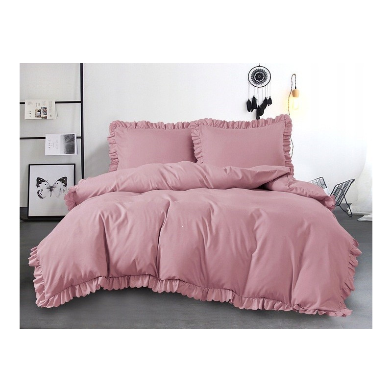Pościel Z Falbanką Mikrofibra Cotton World 220x200 Z Prześcieradłem Pudrowy Róż