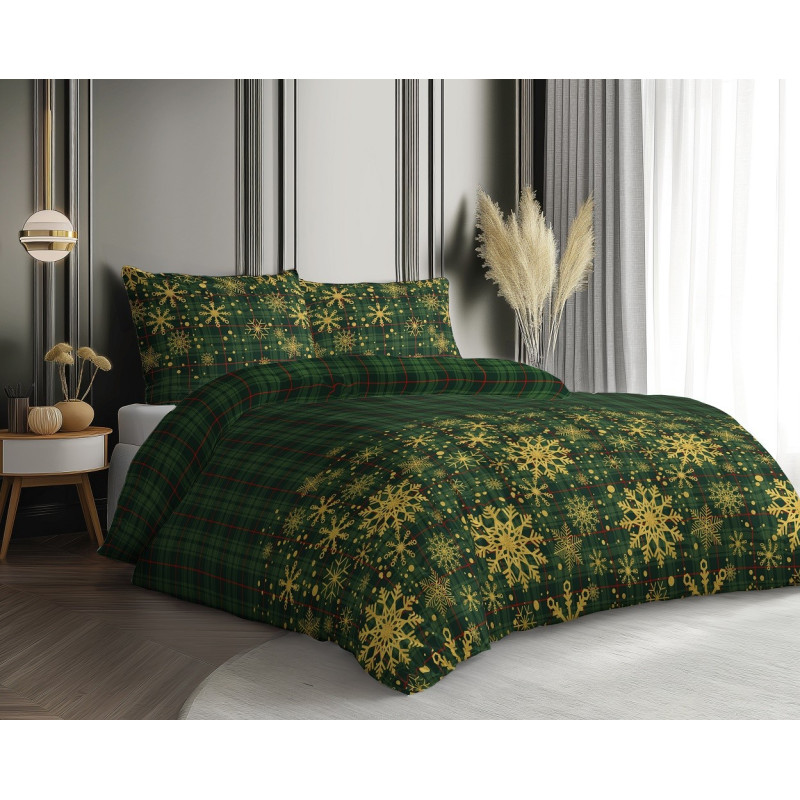 Pościel Świąteczna 220x200 HOME SATIN Detexpol Bawełna 100% Zielona W Śnieżynki