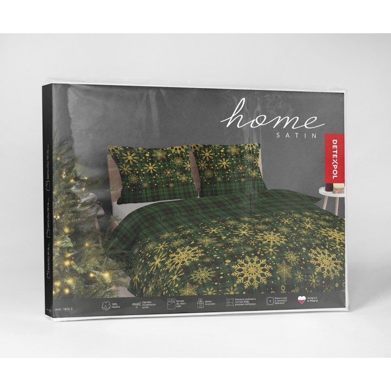 Pościel świąteczna z bawełny ze splotem satynowym z kolekcji HOME SATIN wprowadzi do sypialni wyjątkowy świąteczny klimat. Delikatna i gładka bawełna zapewni komfort podczas snu, a jednocześnie prezentuje się bardzo elegancko. Intensywne, świąteczne kolory kratki świetnie harmonizują się z każdą dekoracją, a złote śnieżynki wprowadzają nutę świątecznego luksusu.