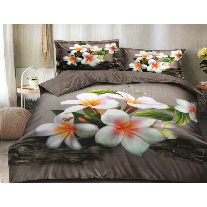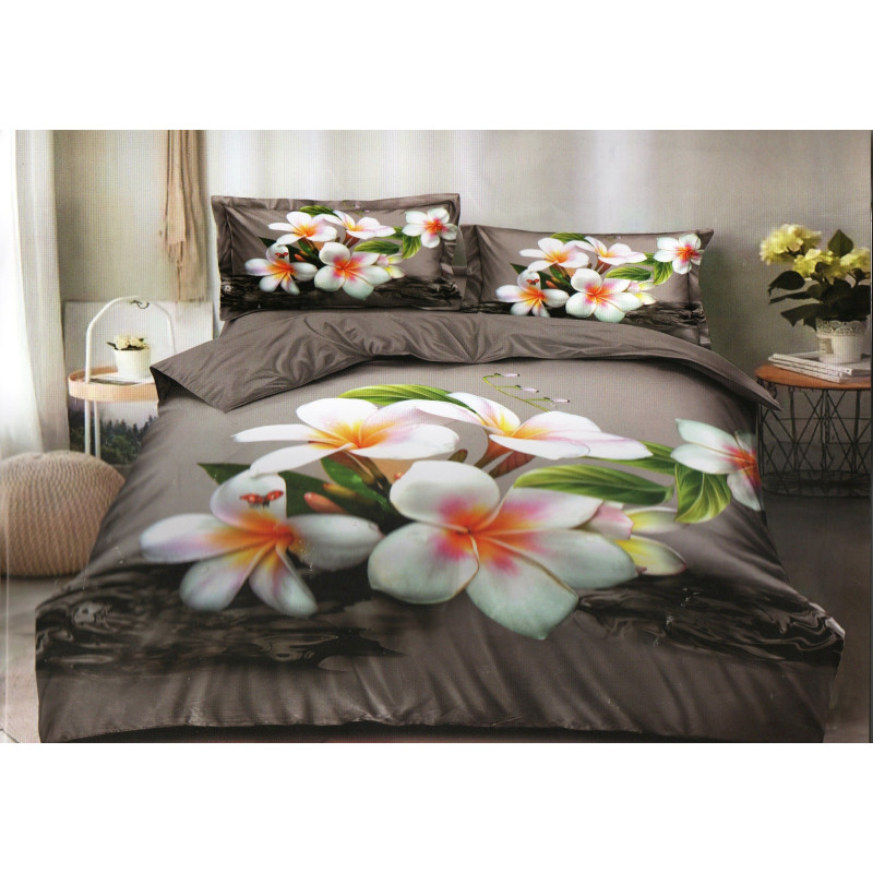 Pościel 3D Satyna Bawełniana 220/200 Z Prześcieradłem Kwiaty