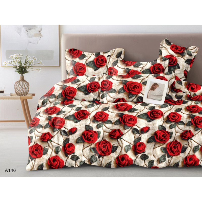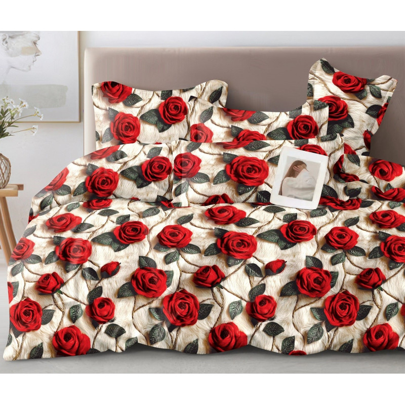 Pościel 3D Satyna Bawełniana 220/200 3cz Czerwone Róże
