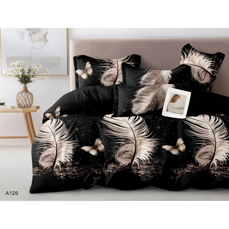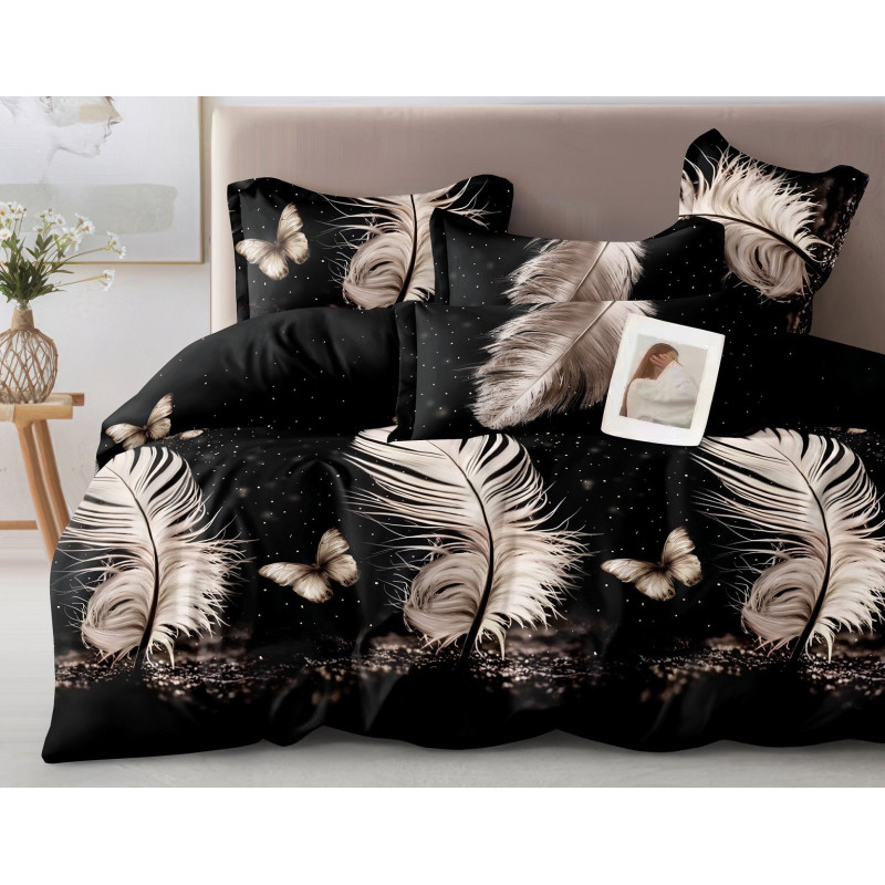 Pościel 3D Satyna Bawełniana 220/200 3cz Pióra Na Czarnym