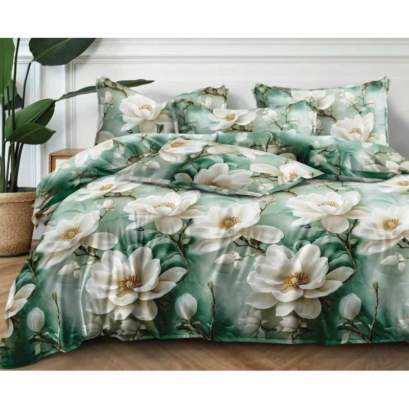 Pościel 3D Satyna Bawełniana 220/200 3cz Kremowe Kwiaty