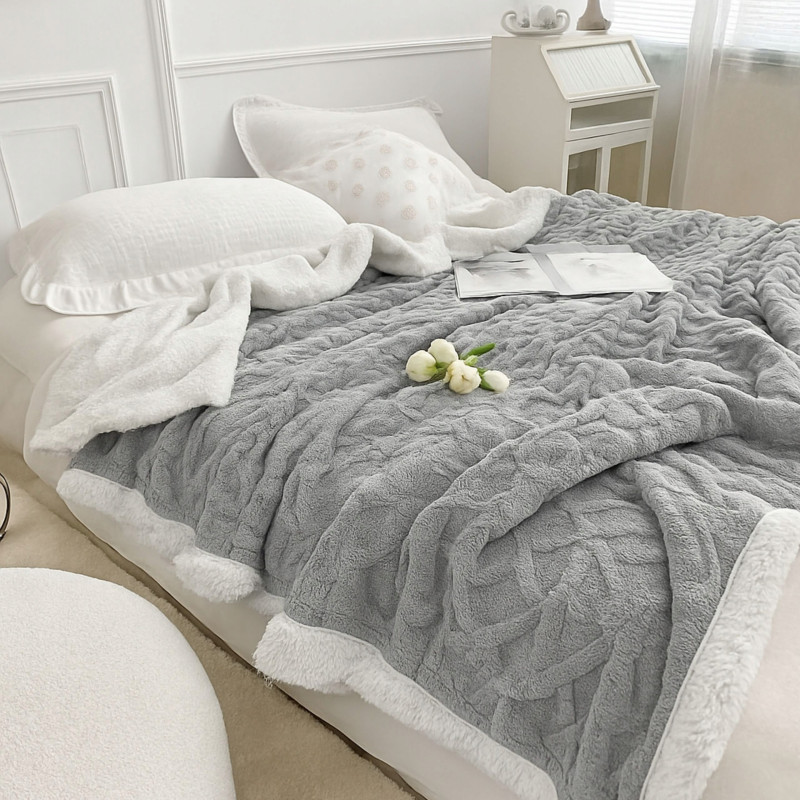 Koc Dwustronny Alpaka Sherpa 200x230cm Jasny Szary Sweterek