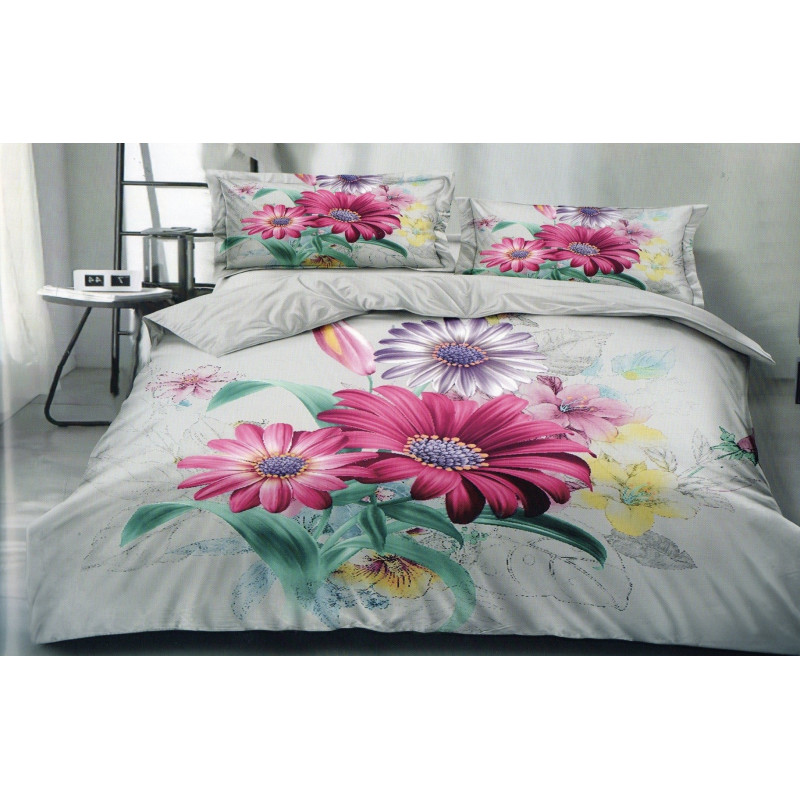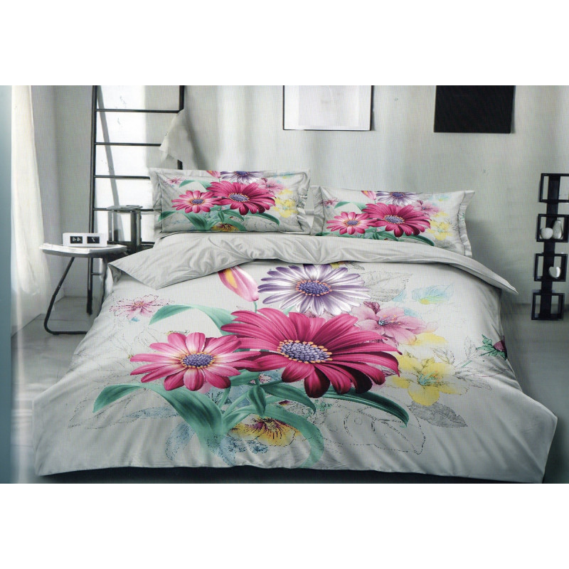 Pościel 3D Satyna Bawełniana 220/200 Z Prześcieradłem Kwiaty