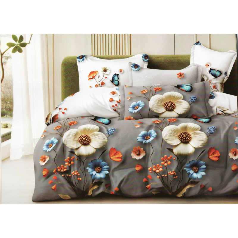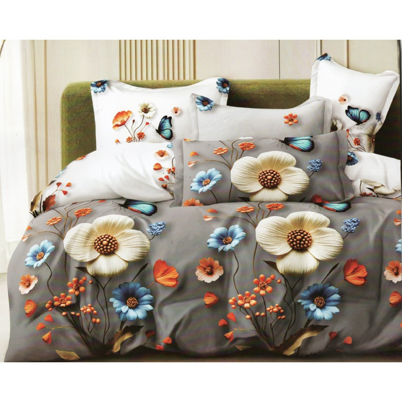 Pościel 3D Satyna Bawełniana 220/200 z Prześcieradłem Kolorowe Kwiaty