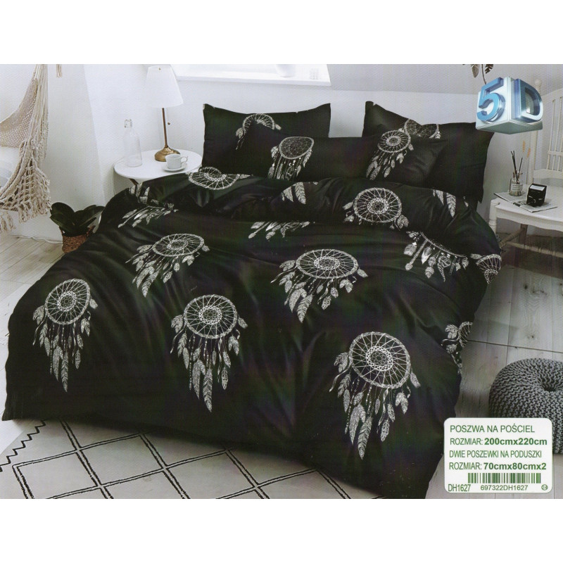 Pościel 3D Satyna Bawełniana 220/200 3cz Czarna Łapacze Snów