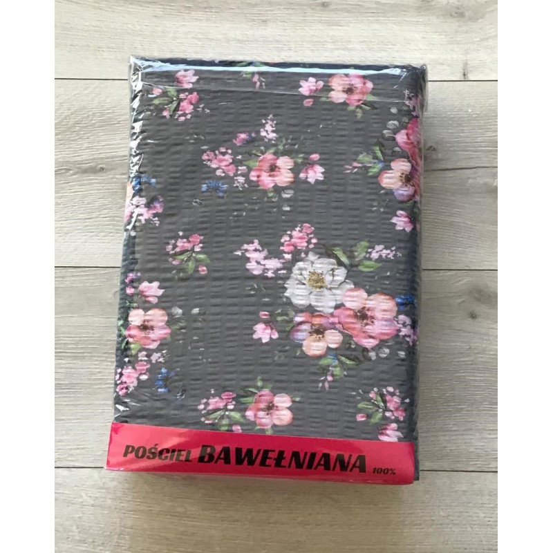 Komplet Pościeli Z Kory 100% Bawełna 160x200 Kwiaty Na Szarym