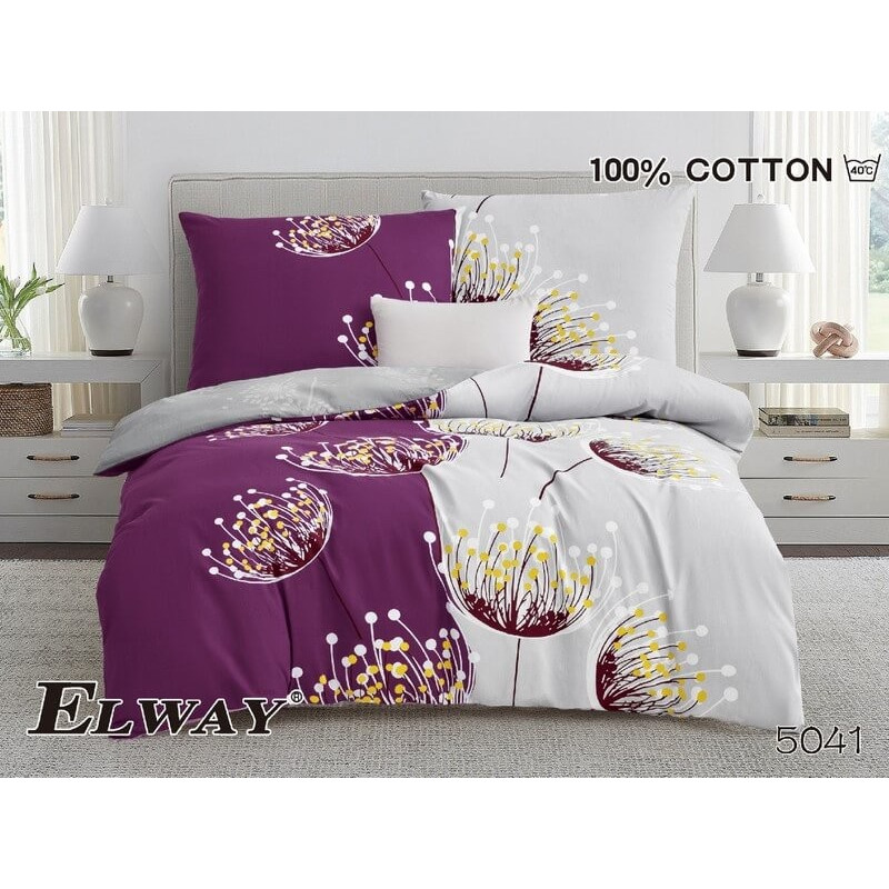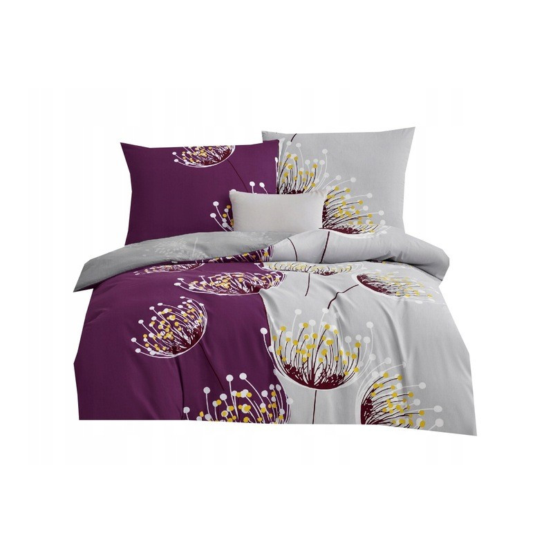 Pościel Dwustronna Bawełniana Elway 140/200 Dmuchawce Fioletowo Szara