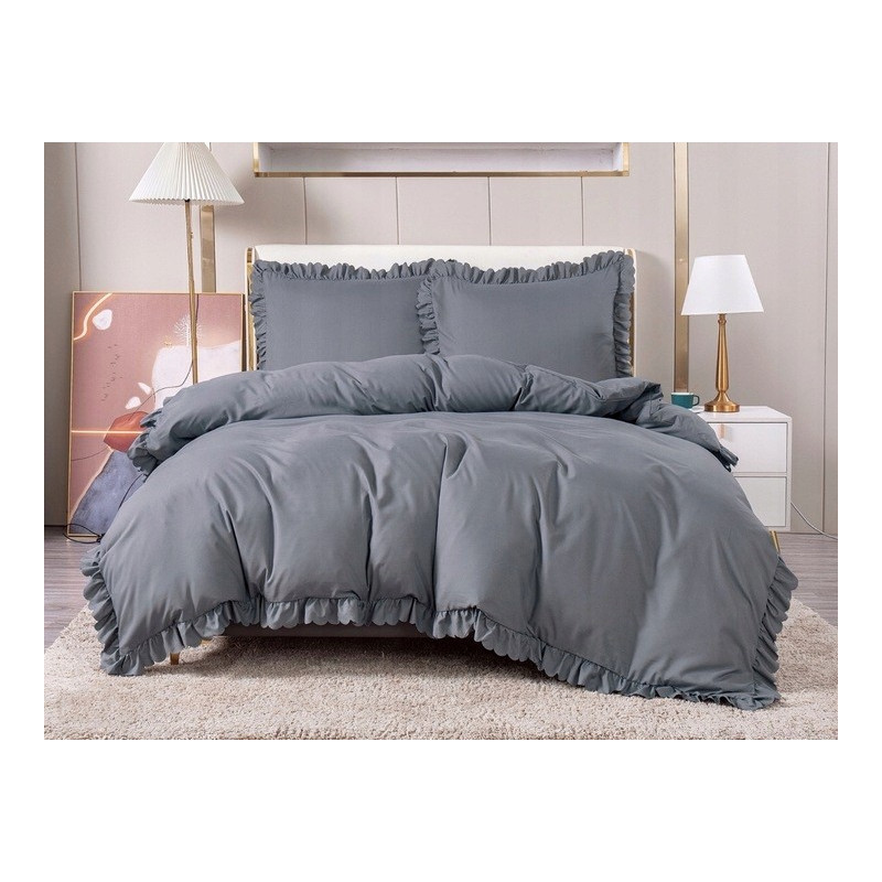 Pościel 3cz 160x200 z falbanką CT-FFB-2596(Szara)