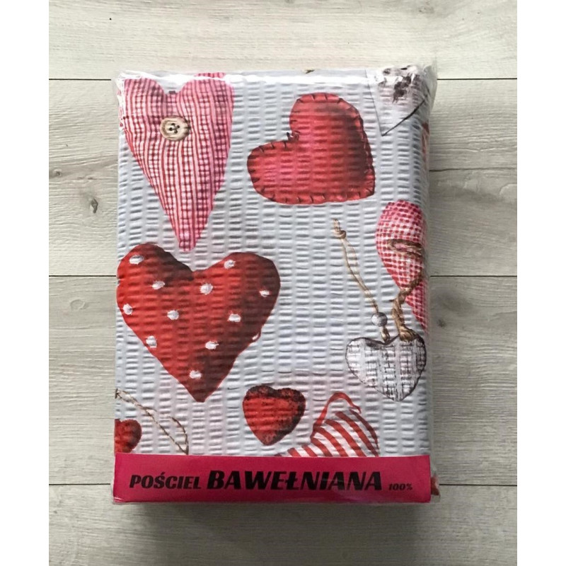 Komplet Pościeli Z Kory 100% Bawełna 160x200cm Serca Na Jasno Szarym
