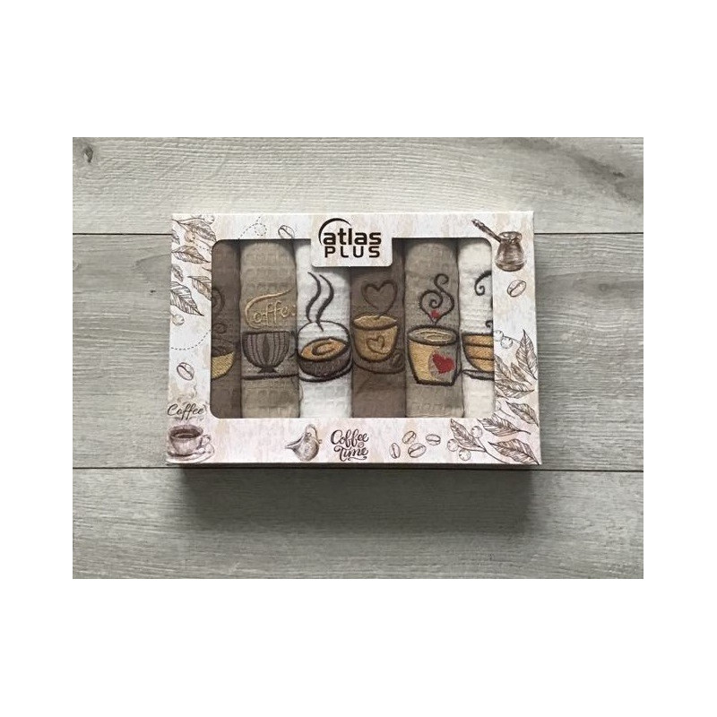 Komplet Ścierek Kuchennych Haftowanych 6szt Coffee
