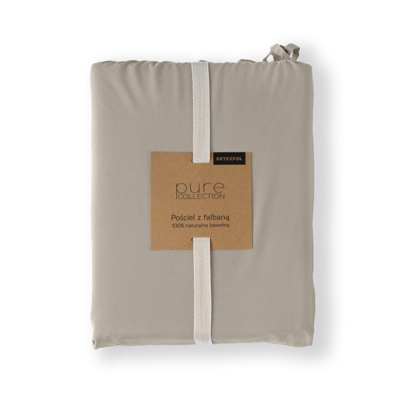 Pościel bawełniana z falbanką Detexpol Pure DT160-taupe(ciemny beż)