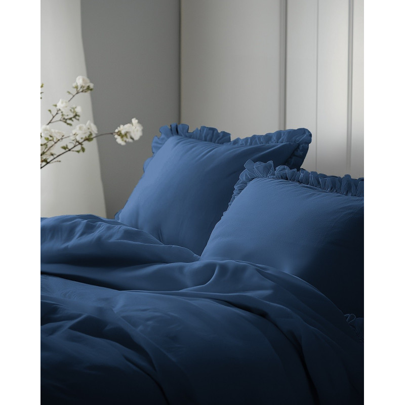 Pościel bawełniana z falbanką Detexpol Pure DT160-Denim( Granat)