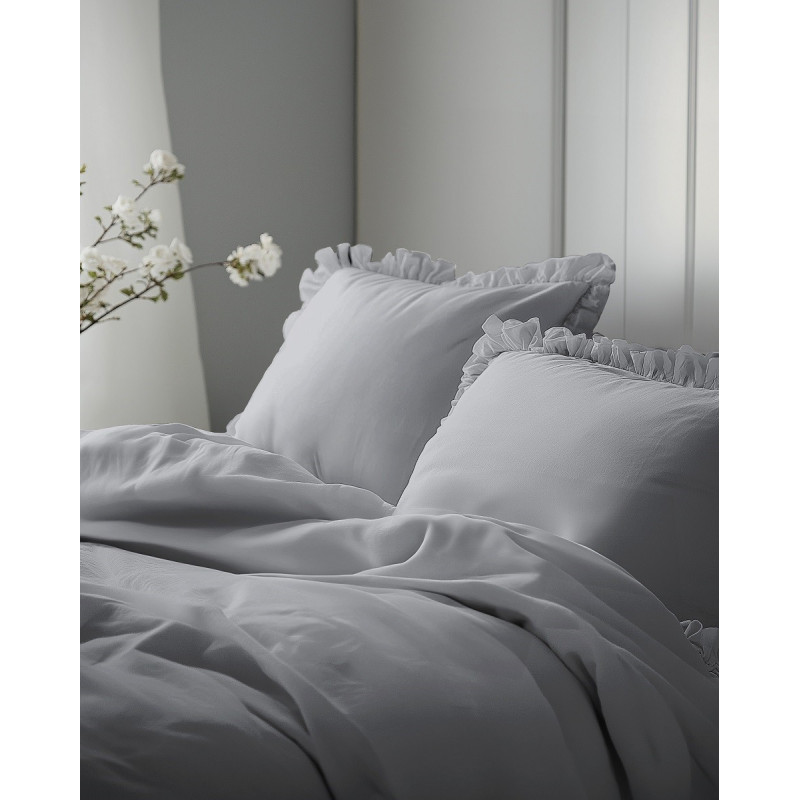 Pościel bawełniana z falbanką Detexpol Pure DT220-Light Grey(Jasnoszara)