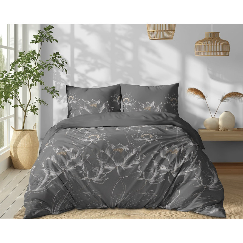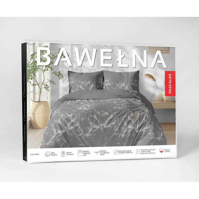 Pościel Detexpol 100% Bawełna 220x200 3cz 5751B Szara Kwiaty