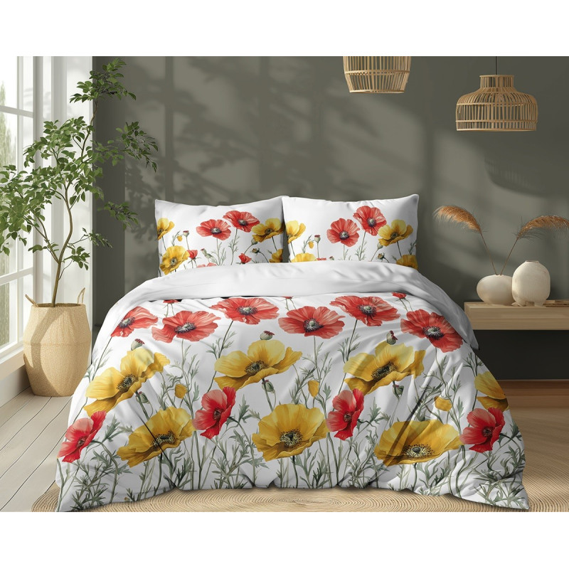 Pościel Detexpol 100% Bawełna 220x200 3cz 5758A maki Czerwone i Żółte