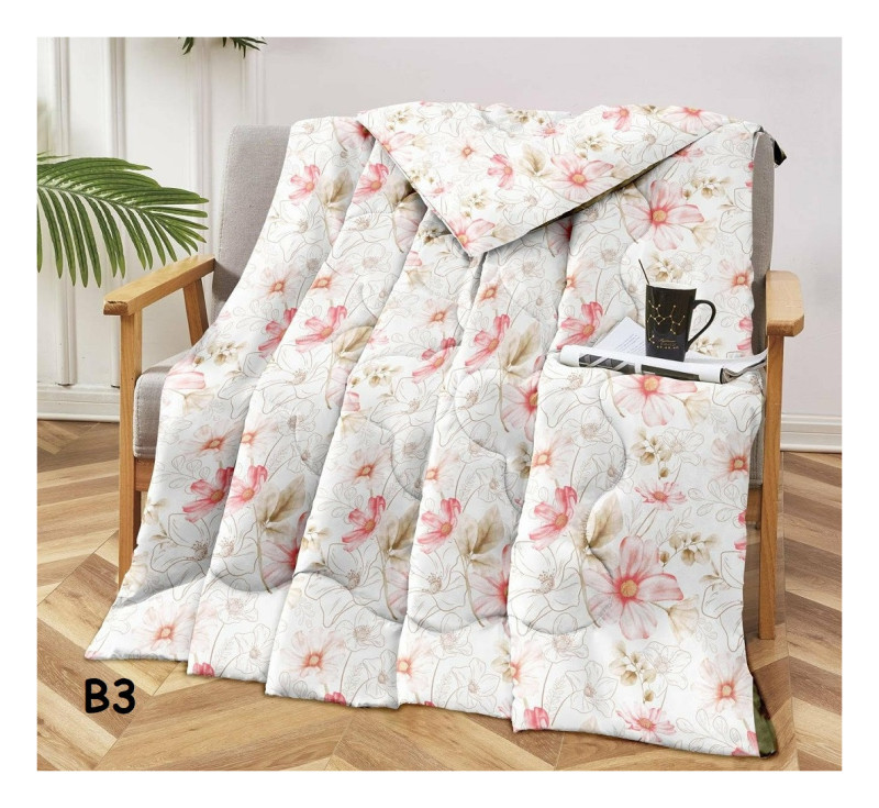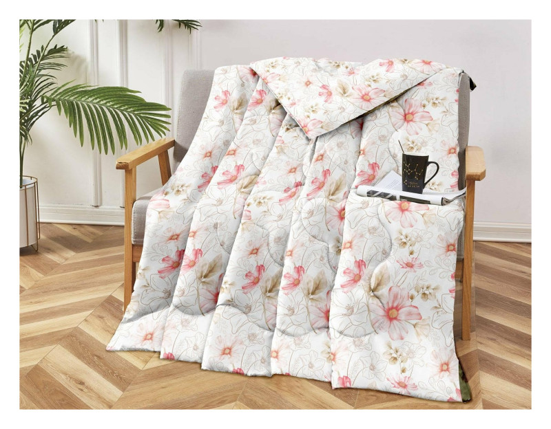 Kołdra Pikowana Cienka Na Lato 220x200cm Kwiaty Na Białym