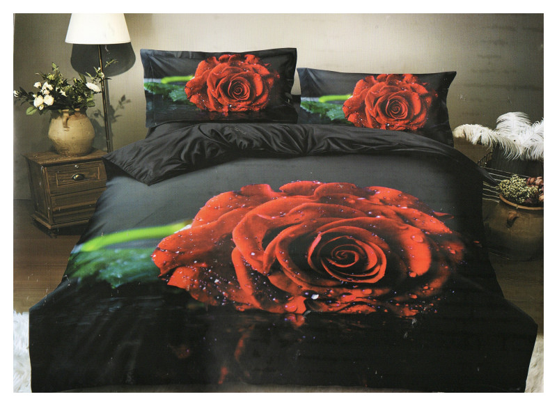 Pościel 3D Satyna Bawełniana 160/200 3cz Czerwona Róża