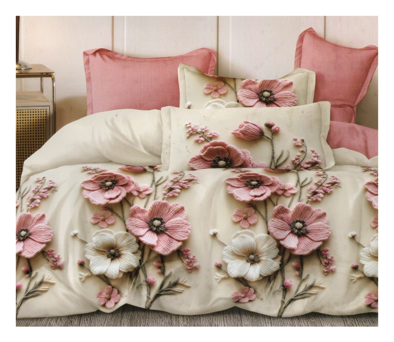 Pościel 3D Satyna Bawełniana 220x200 Z Prześcieradłem Różowe Kwiaty