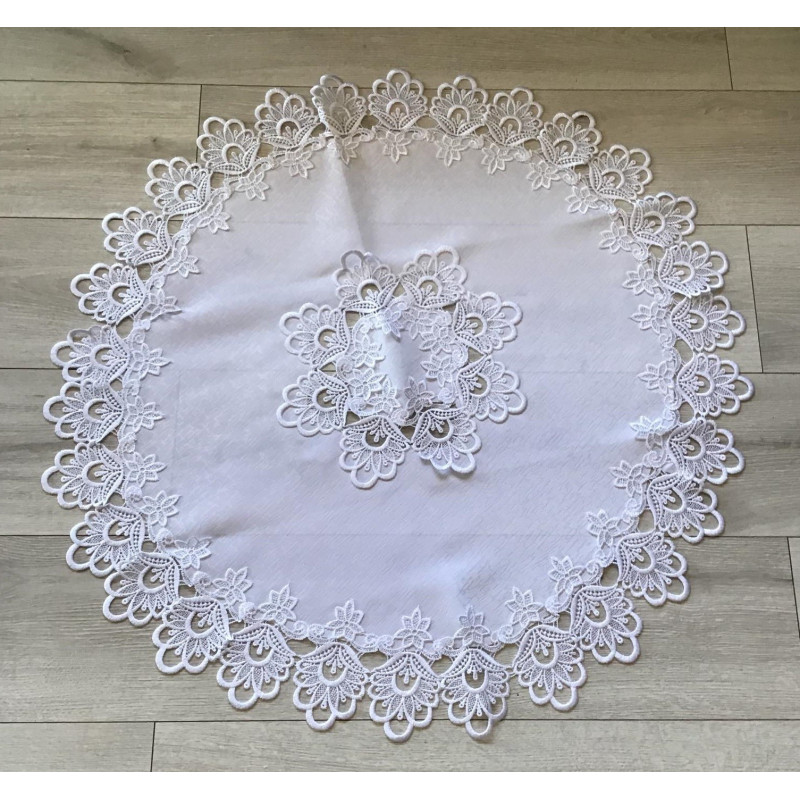 Obrus okrągły biały zdobiony koronką  gipiurową 1088RD